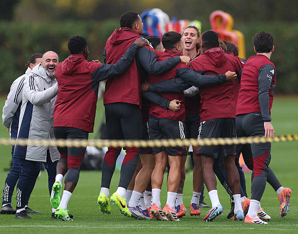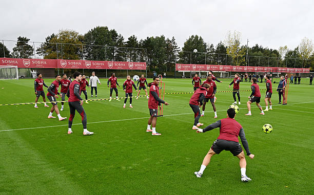 Arsenal training session at Sobha Realty Training Centre on October 20, 2025 in London Colney, England. (Photo by Stuart MacFarlane/Arsenal FC via Getty Images)