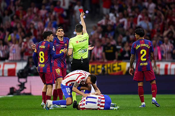 Barcelona defeated Atletico Madrid 2-1 last weekend to continue their push for the league title but the game was overshadowed by a controversial decision by the referee.