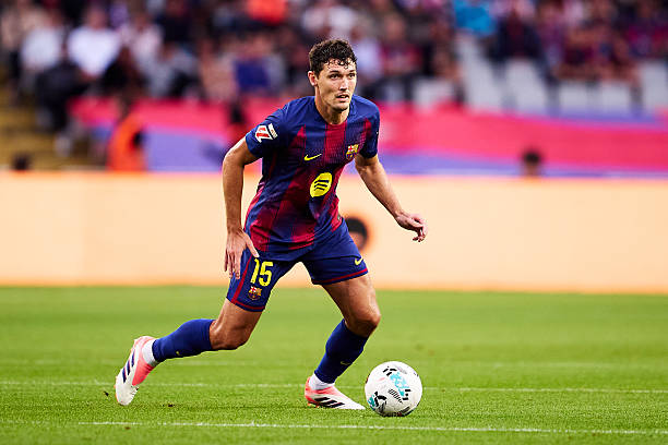 Andreas Christensen runs with the ball during the LaLiga EA Sports match between FC Barcelona and Real Sociedad. (Photo by Manuel Queimadelos/Quality Sport Images/Getty Images)