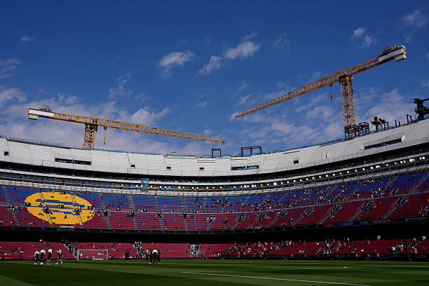 A general interior view of Camp Nou as construction work is seen on redevelopments of of the stadium. (Photo by Robbie Jay Barratt – AMA/Getty Images)