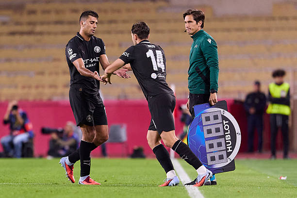 Rodri substituted on for Nico Gonzalez during the UEFA Champions League 2025/26 League Phase MD2 match between AS Monaco and Manchester City. (Photo by Emmanuele Ciancaglini/Ciancaphoto Studio/Getty Images)