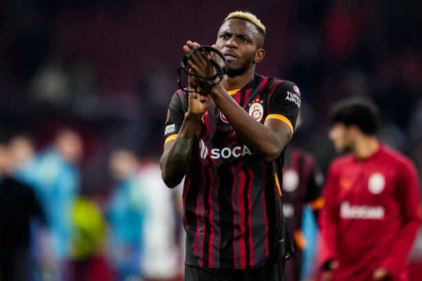 Victor Osimhen of Galatasaray applauds after the UEFA Europa League 2024/25 League Phase MD8 match between AFC Ajax and Galatasaray (Photo by Rene Nijhuis/MB Media/Getty Images)