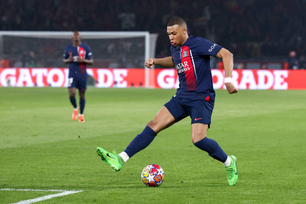 PARIS, FRANCE – MAY 7: Kylian Mbappe #7 of Paris Saint-Germain controls the ball during the UEFA Champions League semi-final second leg match between Paris Saint-Germain and Borussia Dortmund at Parc des Princes on May 7, 2024 in Paris, France.(Photo by Catherine Steenkeste/Getty Images)