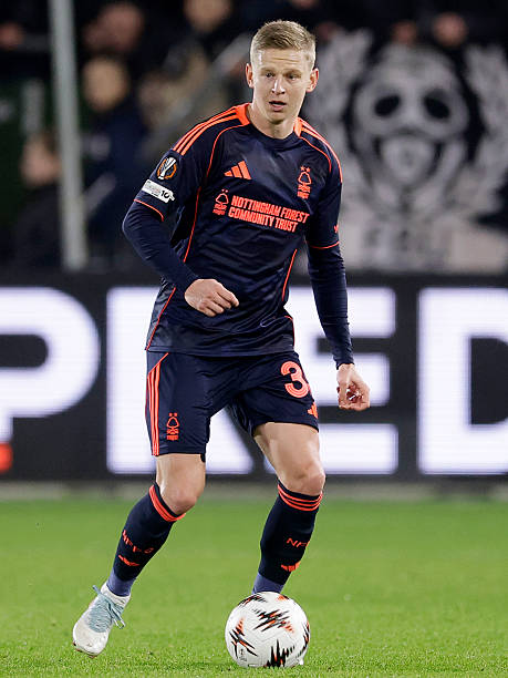 Oleksandr Zinchenko of Nottingham Forest during the UEFA Europa League match between FC Utrecht v Nottingham Forest at the Stadium Galgenwaard on December 11, 2025 in Utrecht Netherlands (Photo by Jeroen van den Berg/Soccrates/Getty Images)
