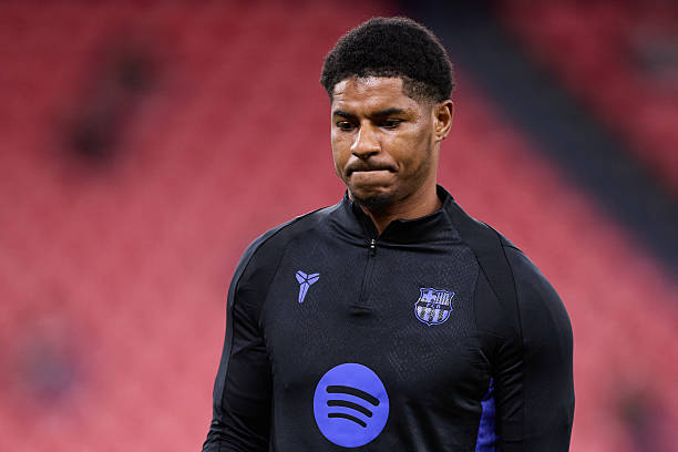 Marcus Rashford looks on prior to the LaLiga match between Athletic Club and Barcelona. (Photo By Ricardo Larreina/Europa Press via Getty Images)