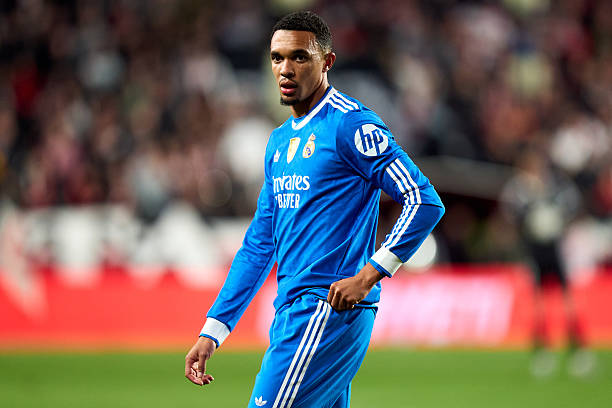 Trent Alexander-Arnold looks on during the LaLiga match between Rayo Vallecano de Madrid and Real Madrid. (Photo by Angel Martinez/Getty Images)