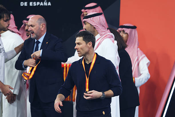Xabi Alonso walks with Madrid’s runners up medal around his neck following the Spanish Super Cup Final loss against FC Barcelona. (Photo by Yasser Bakhsh/Getty Images)